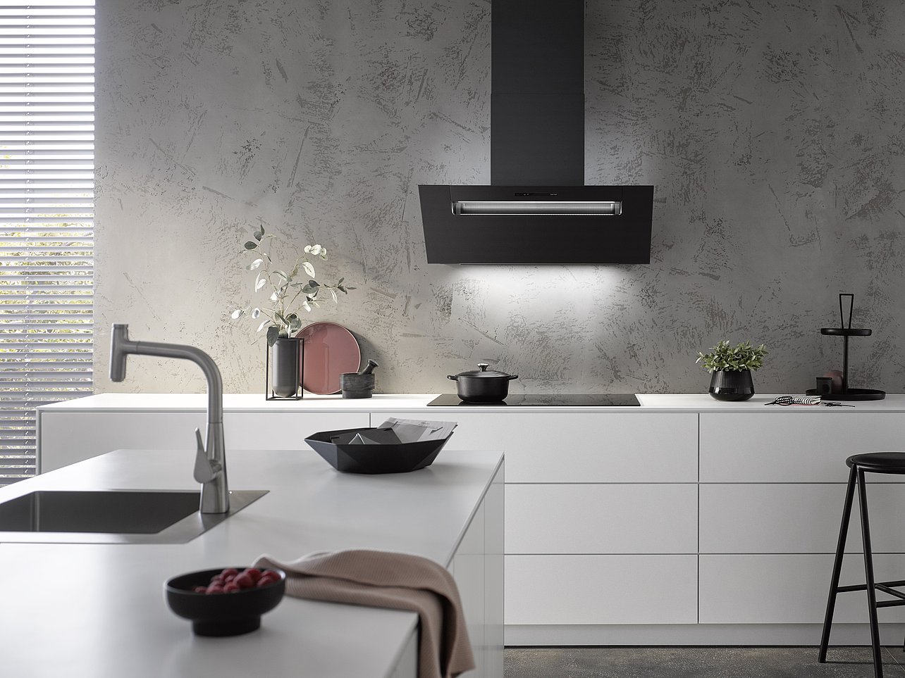 Das Sortiment umfasst die gesamte Bandbreite an Abzugstypen für moderne Küchengrundrisse. Kopffreihauben setzen einen Akzent über dem Kochfeld und schaffen viel Bewegungsfreiheit beim Arbeiten. Inselhauben inszenieren die Kochinsel als Mittelpunkt des Raums. Wandhauben fügen sich zurückhaltend in die Front ein oder setzen gezielt einen gestalterischen Akzent. Einbauhauben und Lüfterbausteine verschwinden vollständig im Oberschrank, wenn die Küche ruhig wirken soll. Kochfeldabzüge erfassen die Dünste dort, wo sie entstehen, und eignen sich vor allem für offene Wohnküchen mit durchgehender Sichtachse. Mit den Tischlifthauben hat berbel schließlich eine Variante im Sortiment, die nur bei Bedarf aus der Arbeitsplatte ausfährt.